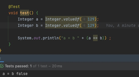 Integer a = Integer.valueOf(129);