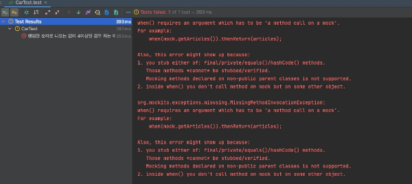 이로인해 Car 도메인의 비지니스 로직은 Random 함수에 대한 종속성을 가지고 가지 않아 테스트에 유려한 코드가 됩니다.