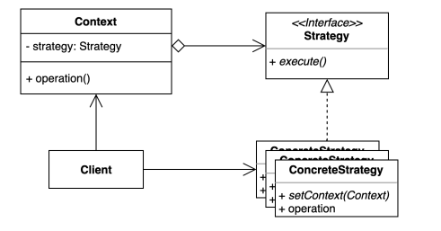 → 컨텍스트에서 사용할 알고리즘을 클라이언트가 선택 (전략을 선택)