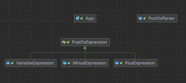 기본적인 구조는 이러하니, 이제 컴공시간에만 사용되는 후위 연산자를 인터프리터 패턴을 이용하여 구현해 보겠습니다.