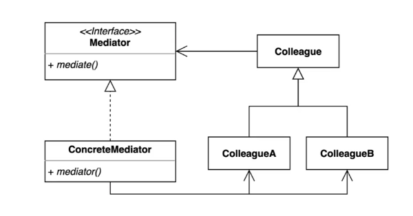 - Colleague: 다른 Colleague와의 상호참조를 위한 인터페이스.