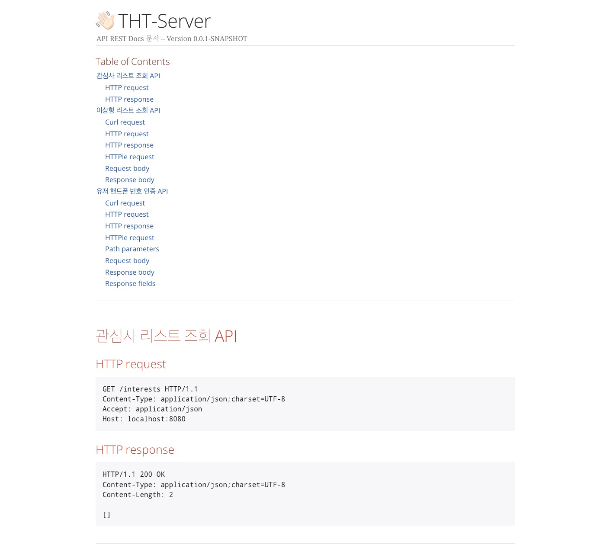 이렇게 설정을 하면 짠! 하고 설정한 restdocs 로 만든 문서화가 만들어졌습니다.