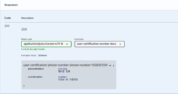 해당 API를 호출할때 사용한 본문과 매핑되는 객체의 이름입니다. - responseSchema(Schema)