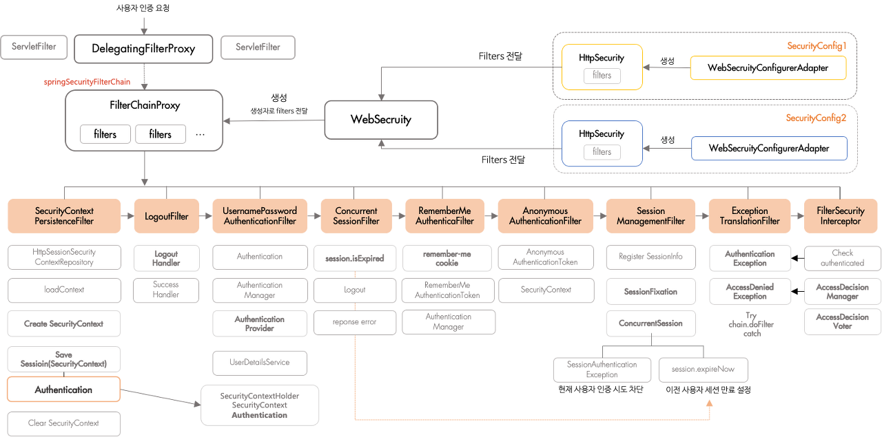 스프링 인증관련 아키텍쳐 구조 그림입니다.