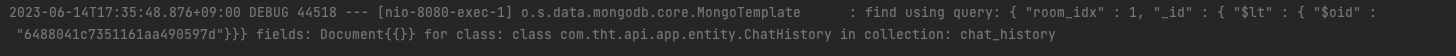 + 추가적으로 날라가는 mongoDB 쿼리가 보고싶다면 아래처럼 로깅을 설정해주시면 됩니다.