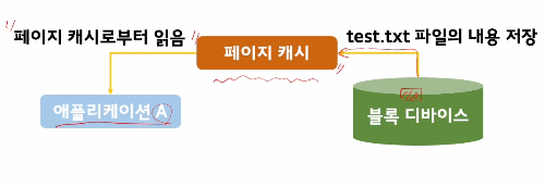 - 페이지 캐시에서 test.txt 를 저장해 두었다가 애플리케이션이 페이지 캐시에서 조회함