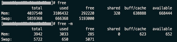 - ✔️ free 명령어를 통해 메모리 사용 현황 (가용 메모리양) 을 확인할 수 있습니다.