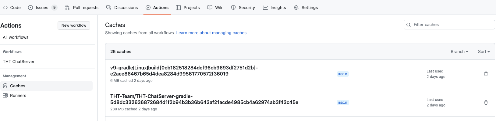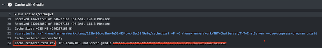 2번째 acition부터는 이렇게 github 에 저장된 캐시 정보를 불러올 수 있습니다.