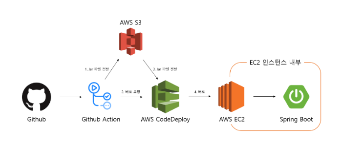 - GItHub Merge → Jenkins (Main Branch Build & Jar file deploy) → ec2 shell script 실행 의 구조인데