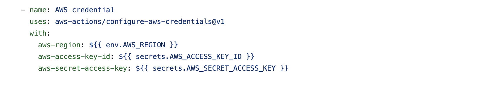 aws-secret-access-key: ${{ secrets.AWS_SECRET_ACCESS_KEY }}