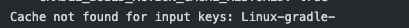 이를 적용하고 git action을 돌리면 아래 사진과 같이 Cache not found for input keys 로그가 나타납니다.