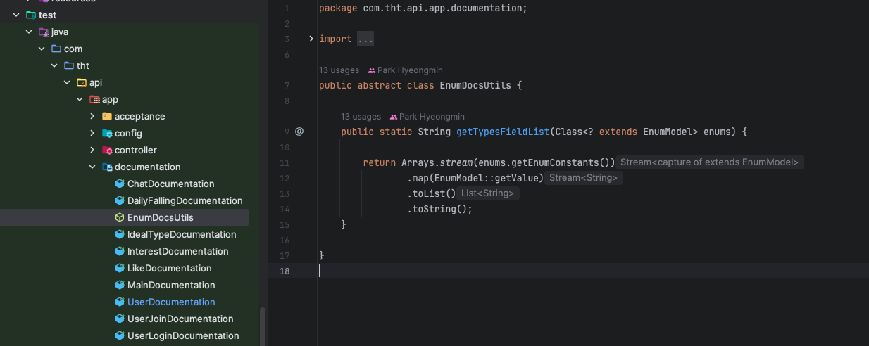 📌 하지만 이 방법은 Enum 의 상태값이 추가되거나 변경된다면 컴파일시 잡을 수 없기 때문에 문서가 틀어질 가능성이 몹시 높습니다.