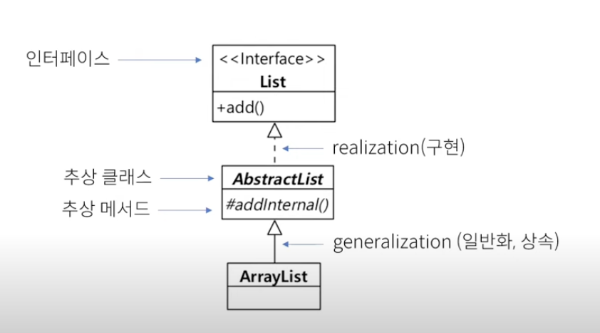 - 인터페이스 : 꺽쇠 2개(스테레오 타입)로 인테페이스임을 알림
