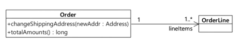 - OrderLine 의 여러 객체는 Order 가 강력한 소유 (compostion)