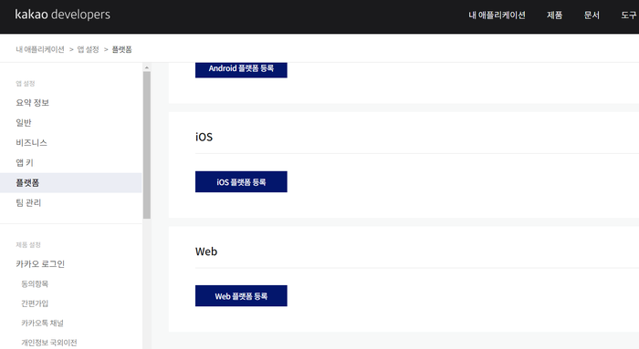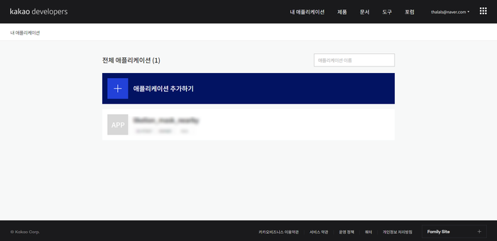 1. 카카오 개발자 사이트 접속 후 키 받기