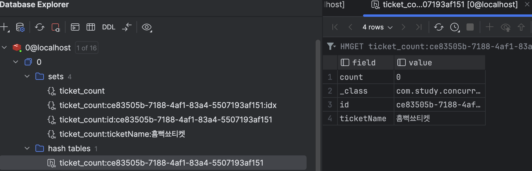 @RedisHash(value = "ticket_count", timeToLive = 30)