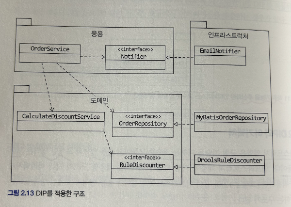 - DIP 를 적용할 때, 하위 기능을 추상화한 인터페이스는 고수준 모듈 관점에서 도출되어야 합니다.