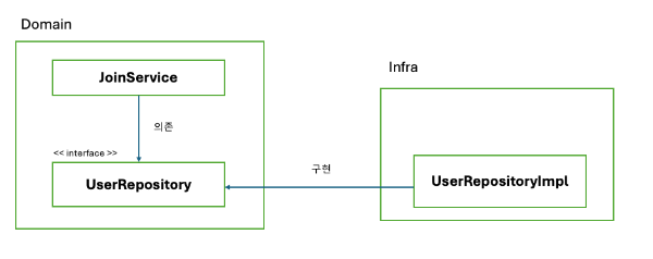 - 이러한 구조는, UserRepository 인터페이스를 고수준 모듈인 도메인 모듈 관점이 아닌 저수준 모듈 관점에서 도출한 것 입니다.