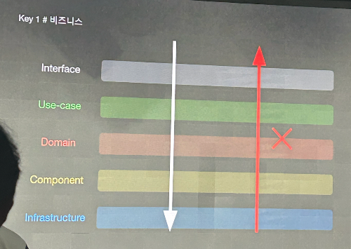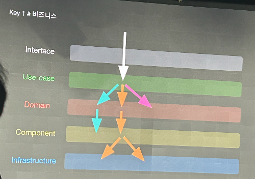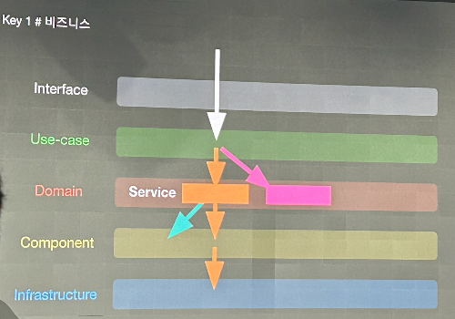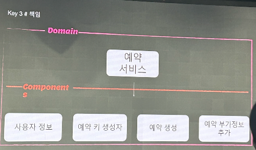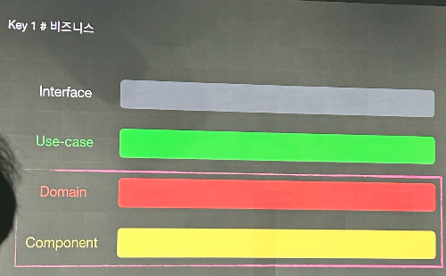- 흔히 Domain 에 비지니스 로직을 두는데, 이를 한단계 내려 Compnent 로 두었다고 하셨습니다.