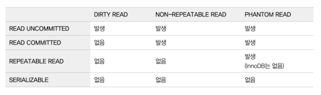 3가지 부정합 문제가 발생하며, MySQL 에서는 최소한 READ COMMITED 이상의 격리 수준을 사용할 것을 권장합니다.
