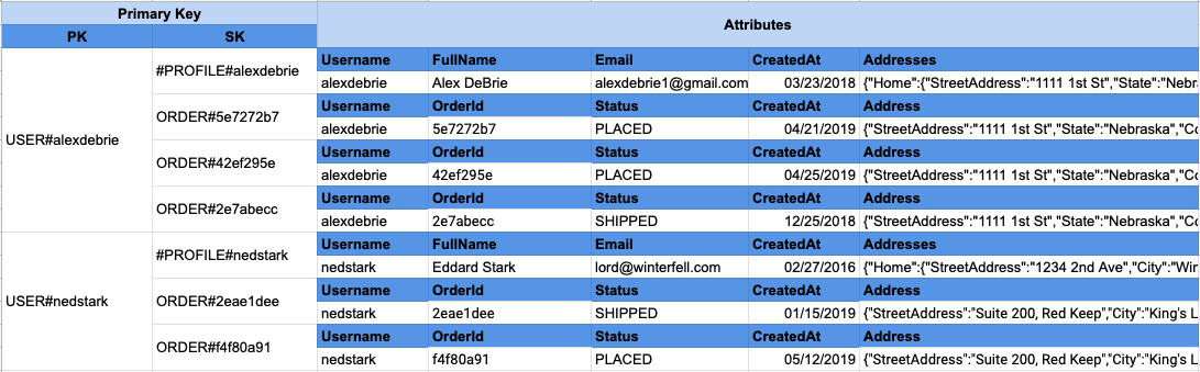 - 역인덱스가 있는 단일 테이블은 일반적으로 간단한 쿼리를 통해 애플리케이션에 필요한 복잡한 계층적 데이터 구조를 생성하고 검색할 수 있도록 지원