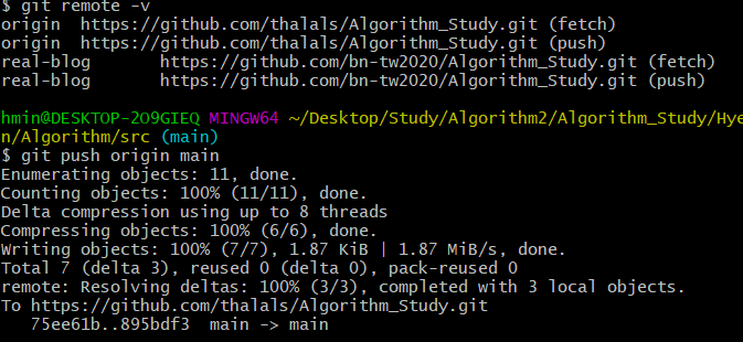 1) git remote 연결 주소 확인하기