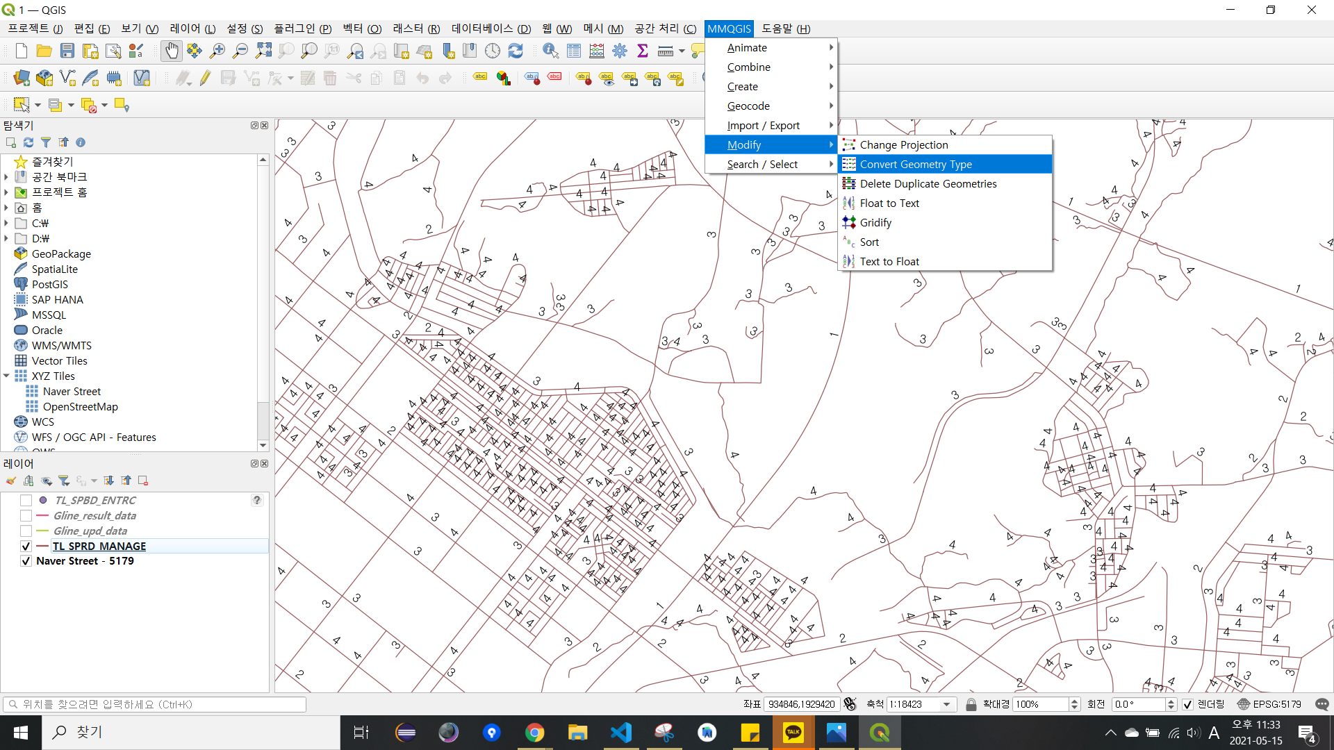 검색결과 MMQGIS 플러그인을 이용하여 변환할 수 있을 것 같다. 설치해보자